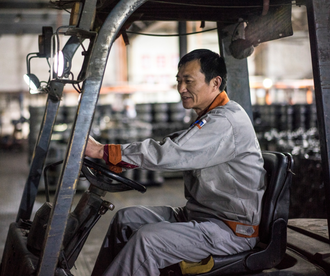 走過涂裝車間你總會聽見這幾句話,“師傅,麻煩叉一下這框毛胚”,“師傅,麻煩幫我叉一下這框產(chǎn)品到下掛處”,你就會看見劉師傅在嫻熟的操作下,鏟腳很準地插進鐵框下面的支架,提起,倒車,轉(zhuǎn)彎,開出車間,穩(wěn)穩(wěn)地放到指定地點上,整個過程一氣呵成。這就是我們的叉車師傅劉曙光。